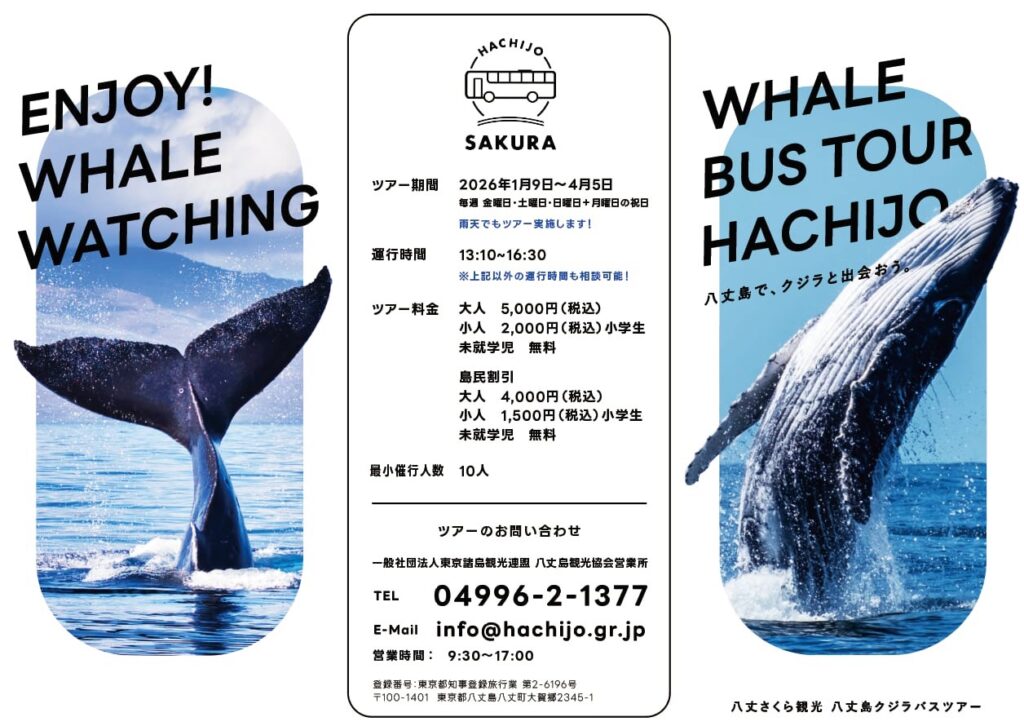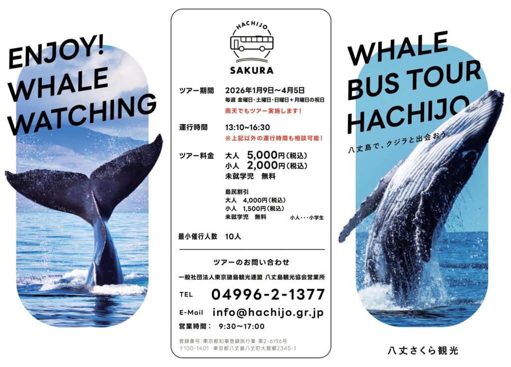 昨年ご好評頂きました陸上バスツアーの『クジラバスツアー』を2026年も開催いたします。 寒い時期でのツアーではありますが、暖かいバスの車内からもクジラをご覧頂けるツアーとなっております。 ささやかではございますが、参加者の皆様へのお土産をご用... -
